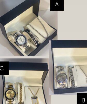 Fake roses flowers + Body splash + body lotion + Scarf + watch for men + wallet