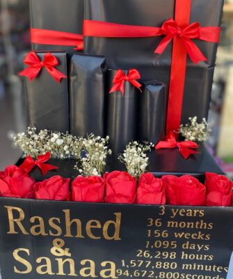 Fake flowers + Chocolate + 4 pack of cigarettes + fake flowers